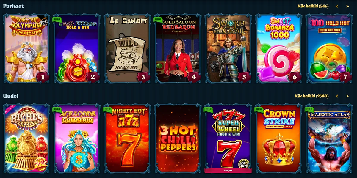 Meillä on käytettävissä yli 2500+ peliä, joista merkittävä osa on kolikkopelejä eri kategorioissa: