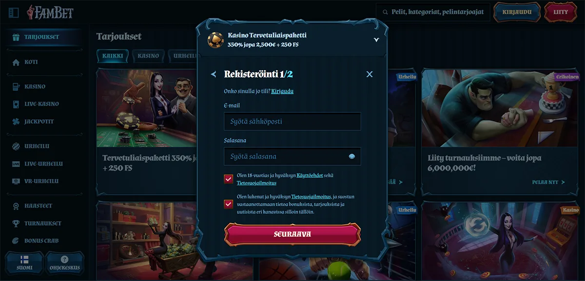 Ensitalletusbonukset ja ilmaiskierrokset Fambet