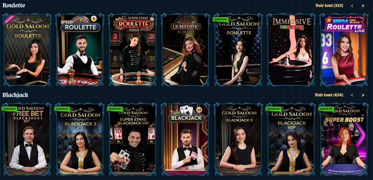 Roulette en ligne, blackjack et baccarat constituent notre offre principale. Chaque table propose des limites adaptées aux différents budgets de jeu.